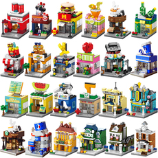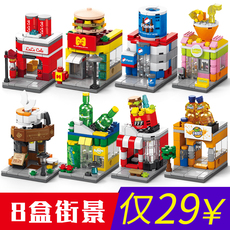 微颗粒儿童益智拼装街景积木商店模型玩具男孩拼图建筑小房子礼物