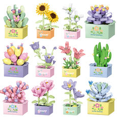 小颗粒中国拼装积木花束永生花男女孩伴手礼拼图儿童六一积分礼物