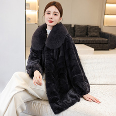 进口天鹅绒水貂毛大衣女2026冬新中长款妈妈狐狸毛领拼貂皮草外套