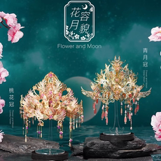 拼酷凤冠花容月貌桃花金翅鸟冠金属拼图国风拼装模型花轿礼花间伞