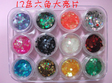 光疗指甲油胶亮片大六角大亮片12色一套美甲产品镭射亮粉片