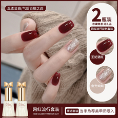春夏酒红色指甲油胶2025年新款流行显白车厘子红双色美甲光疗套装