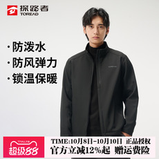 探路者立领软壳外套男秋冬新款户外防风防水弹力加绒保暖徒步夹克