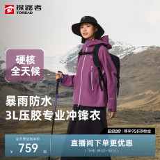 【探极】探路者冲锋衣男户外登山硬壳防水3L压胶轻量防风外套女