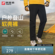 探路者软壳裤2025新款户外登山徒步防泼水防风加绒直筒休闲裤男女