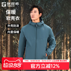 探路者软壳外套男秋冬新款户外徒步登山防风防水加绒保暖连帽夹克