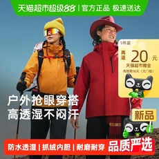 【极光Hyper】探路者户外登山徒步防水套绒三合一冲锋衣外套男女