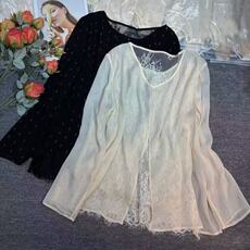 甜甜26年春款睫毛蕾丝拼接假两件防晒小衫