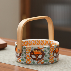新年干果盘高级感零食水果篮家用客厅茶几陶瓷手提篮伴手礼送女生