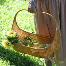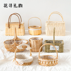 厂家节日伴礼品包装草编提篮鲜花提手提插花藤编手提花篮花盆编织