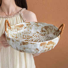 复古原创设计风铃花陶瓷水果提篮零食干果收纳高颜值家用茶几果盘