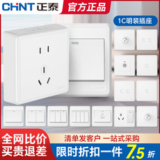 正泰明装开关插座面板家用1C电源一开五孔六孔16A一体超薄明线盒