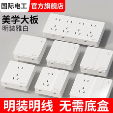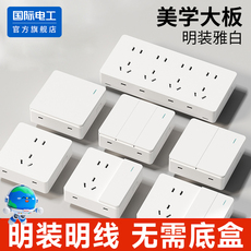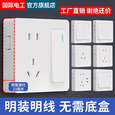 国际电工明装开关插座墙壁明线超薄一开五孔面板多孔家用明装插座