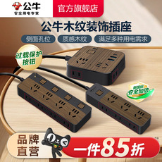 公牛插座面板黑色家用插排插线板木纹接线板插板宿舍桌面拖线板