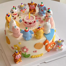 网红ins风熊兔蛋糕装饰软胶立体小蛋糕12生肖小动物老虎猴子摆件