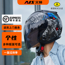 艾狮头盔男士电动车摩托车半盔秋冬季安全帽3c认证四季通用4分之3