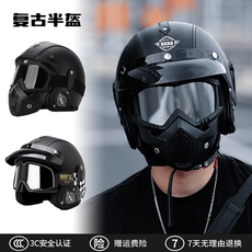 德式大兵盔复古巡航机车瓢盔四季半盔3c认证摩托车头盔踏板车钢盔