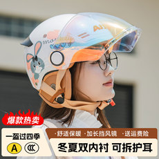 3C认证电动车头盔女四季通用摩托车男秋冬保暖半盔可拆围脖安全帽