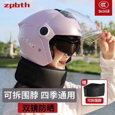 新国标3C认证电动摩托车头盔电瓶车围脖可拆卸双镜片轻便半盔通用