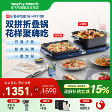 摩飞折叠多功能料理锅电火锅涮烤煎烤厨房电器烹饪机电煮锅聚嗨锅