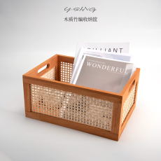 竹编桌面收纳筐原木风高档收纳盒玄关茶几客厅零食床头杂物藤编篮