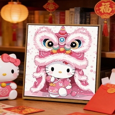 可爱卡通凯蒂猫醒狮DIY数字油画儿童手工绘填充涂色新年装饰挂画