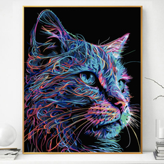 彩色猫画画diy数字油画填充填色抽象手工手绘解压解闷丙烯油彩画