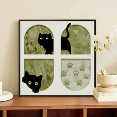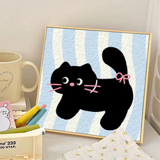 可爱猫咪数字油画diy填充填色手工绘卡通小黑猫丙烯油彩画装饰画