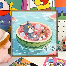 夏日西瓜猫和老鼠可爱卡通DIY数字油画儿童手工绘填充涂色油彩画