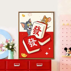 猫和老鼠数字油画diy填充填色手工绘新年发财喜庆丙烯油彩装饰画