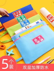 科目分类文件袋拉链语文数学英语帆布A4小学生用科目手提大容量初中装卷子试卷收纳袋书袋补习补课拎书袋学科