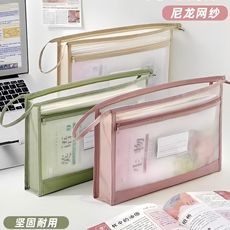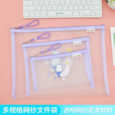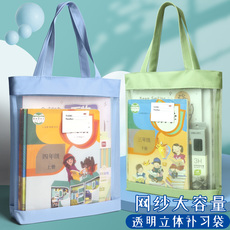 学生科目分类文件袋手提拉链式双层大容量透明网纱小学课本收纳袋
