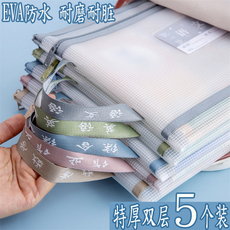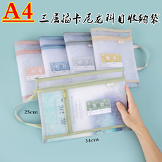 a4加宽立体双层透明网纱大容量手提式科目分类文件袋考试试卷收纳