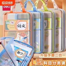 L型科目分类袋透明分科文件袋拉链式男孩初中生专用学科分科小学生学习作业手提拎书袋课本分类大容量收纳袋