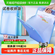 得力透明试卷收纳袋风琴包学生大容量a4按扣文件袋文件夹初中生专用卷子夹高中生手提加厚防水资料袋便携