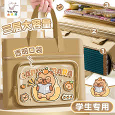 卡皮巴拉手提袋可手拎书包补习袋补课包男生女孩生作业文件袋小学生专用高颜值帆布美术袋试卷收纳袋儿童文具