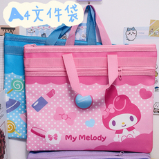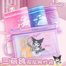 正版库洛米文件袋小学生科目分类试卷袋拉链式a4透明网纱补课包手提袋学生拎书三丽鸥补习袋双层作业收纳书袋