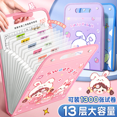 A4手提文件夹试卷袋多层大容量风琴包小学生专用卷子收纳袋整理神器手拎式高中生初中生书夹子科目分类试卷夹