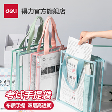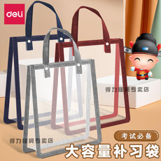 得力透明手提袋高颜值补习袋大容量文件袋学生补习班拎书袋初中生补课包书本收纳袋考试专用袋子a4防水资料袋