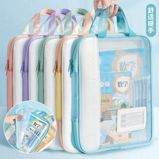 PVC透明科目分类袋小学生文件袋拉链式试卷收纳袋L型手提拎书袋补习袋考试专用袋子初高中档案作业袋文件包