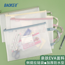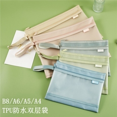 必能A4手提文件袋双层a5票据拉链袋B6笔袋手机收纳袋B8防水资料袋
