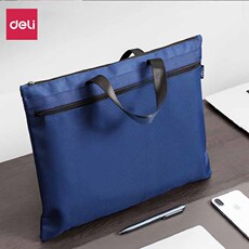 得力商务公文包帆布手提袋A4文件袋手提拉链袋文件包防水手提包牛津布男公文袋收纳办公会议培训班资料袋定制