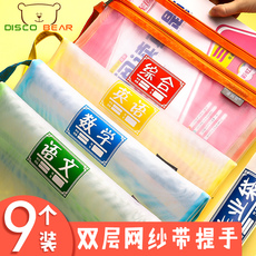 透明科目分类文件袋拉链式手提大容量学生网纱小学课本分科收纳作业试卷收纳袋小学生装卷子资料袋书本双层