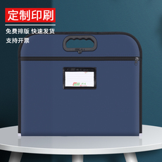 加大B4双层资料袋拉链袋牛津布滑面手提文件袋收纳袋防水文件包档案袋文件袋分类多层资料袋定制印刷图案LOGO