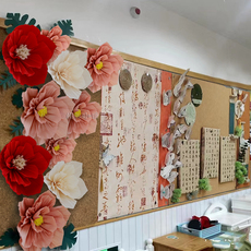 皱纹纸花朵中式国风文化墙面板报布置幼儿园教室班级环创装饰材料