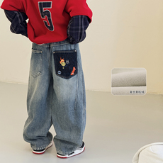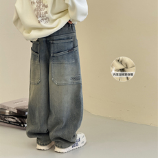 男童加绒裤子2025冬装新款中大童直筒裤帅气一体棉裤儿童牛仔裤厚