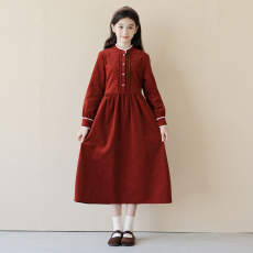 文艺森系连衣裙女童加绒法式复古秋冬裙子大童女孩灯芯绒加绒长裙