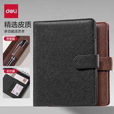 得力多功能加厚带磁扣笔记本本子记事本A5考研笔记考公16K横线课堂文艺商务办公24年新款皮面本会议工作记录