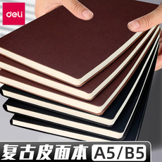 得力a5笔记本子可定制商务皮面本加厚记事本软皮复古皮面简约文艺会议日记本办公会议记录本b5工作笔记本