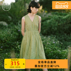 【自在穿行】苎麻连衣裙女2025夏季文艺浪漫刺绣绿色裙轻薄大摆裙